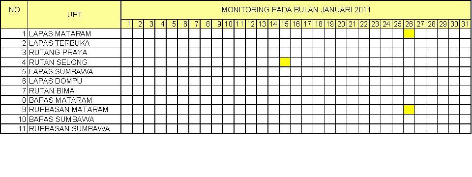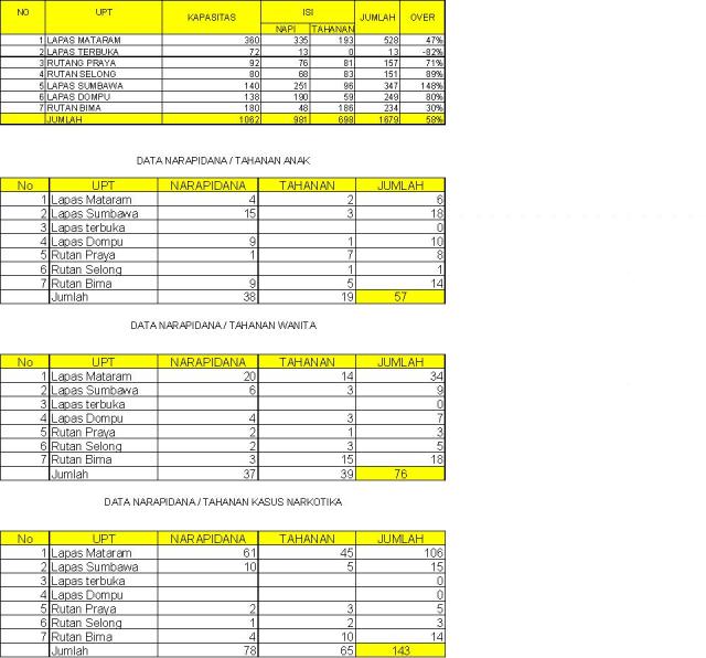1. Melaksanakan Pencatatan / pemantauan isi Lapas / Rutan se NTB