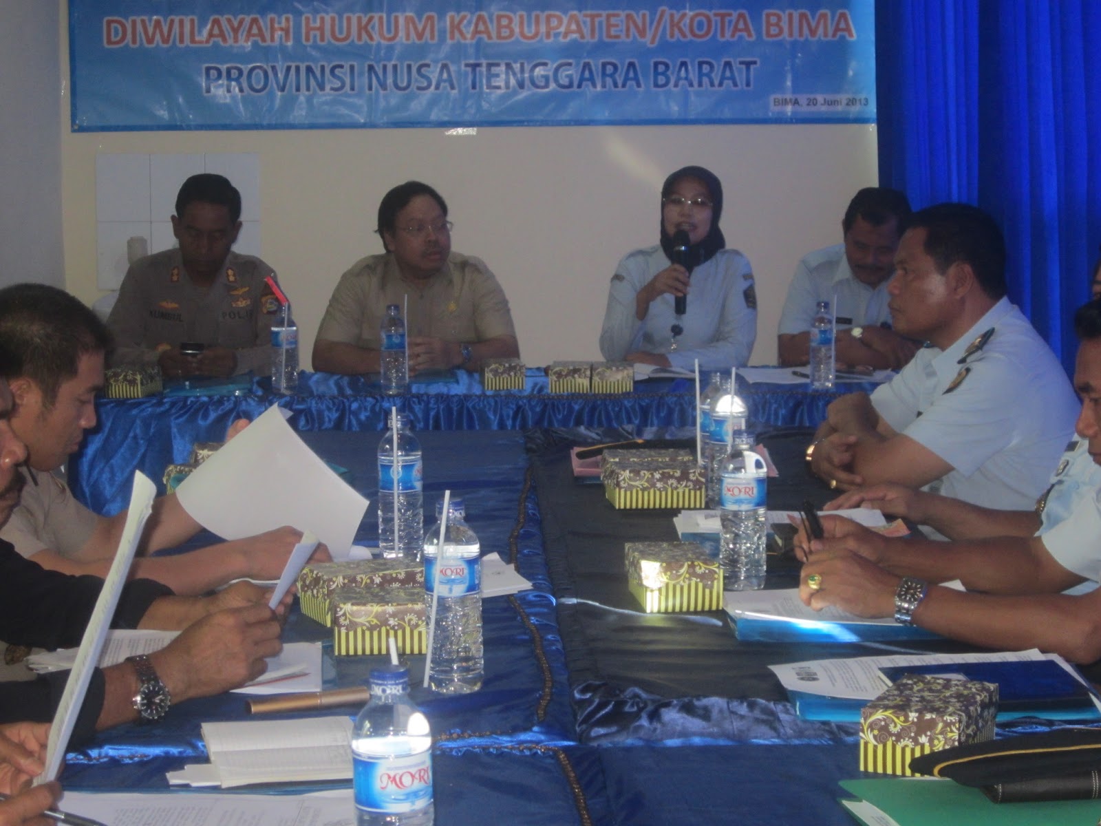Kantor Wilayah Kementerian Hukum dan HAM NTB, telah mengadakan Rakor DILKUMJAKPOL Wilayah Hukum Kabupaten/Kota Bima Tahun 2013, pada tanggal 20 Juni 2013 di Hotel Lam’bitu Bima untuk mengantisipasi berlakunya UU No.11 Tahun 2012 tentang Sistem Peradilan Pidana Anak dan PP 99 Tahun 2012.