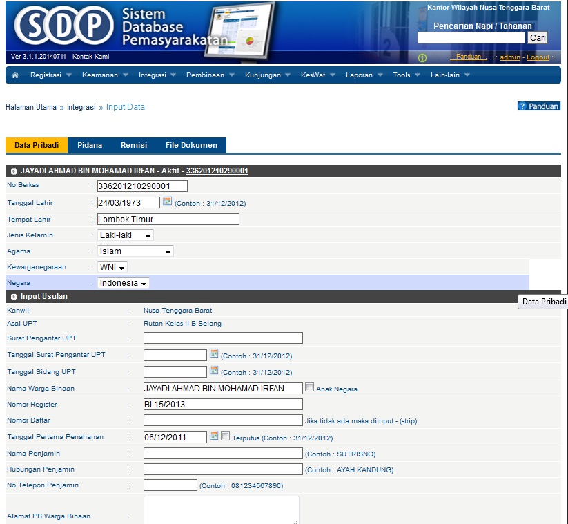 Divisi Pemasyarakatan NTB – sudah mulai menerapkan pengusulan PB secara online semenjak dicanangkan aplikasi PB online, terlebih melalui SDP versi 3.1.1. operator SDP PB online yang ada di UPT Pemasyarakatan sudah dapat melakukan penginputan data secara langsung di tiap-tiap UPT. Penginputan data tersebut dilakukan secara valid tidak hanya di UPT saja namun di verifikasi kembali oleh Kantor Wilayah, sehingga data yang dihasilkan benar-benar valid.