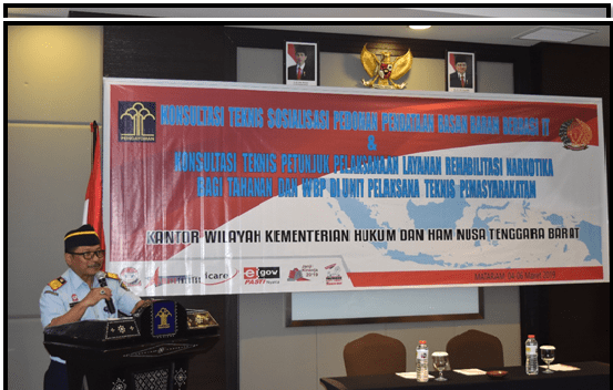 Mataram, (04-06 Maret 2019) Divisi Pemasyarakatan Nusa Tenggara Barat menyelenggarakan Kegiatan Konsultasi Teknis Sosialisasi Pedoman Pendataan Basan Baran Berbasis IT dan Petunjuk Pelaksanaan Layanan Rehabilitasi Narkotika bagi Tahanan dan WBP di UPT Pemasyarakatan Tahun Anggaran 2019.