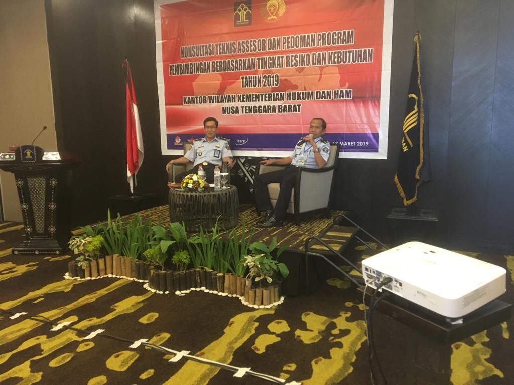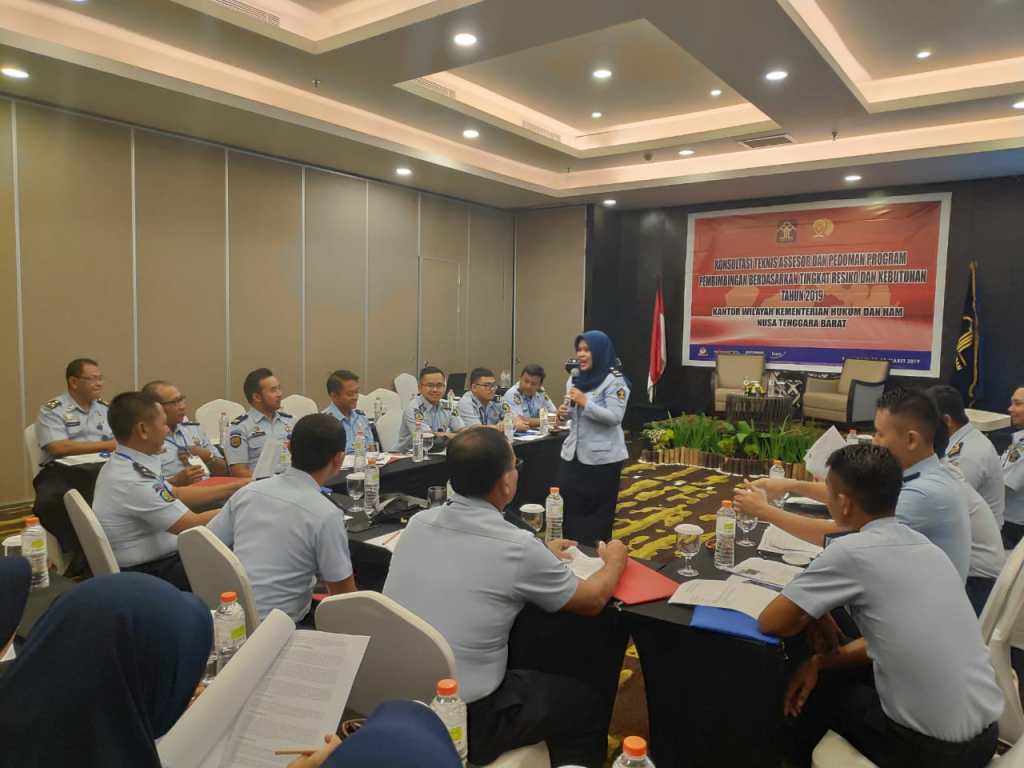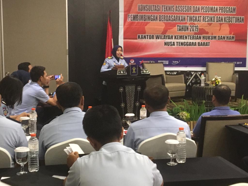 Penyelenggaraan Konsultasi Teknis Assesor dan Pedoman Program Pembimbingan Berdasarkan Tingkat Resiko dan Kebutuhan Tahun 2019 yang diselenggarakan Divisi Pemasyarakatan Kanwil Kementerian Hukum dan HAM NTB.