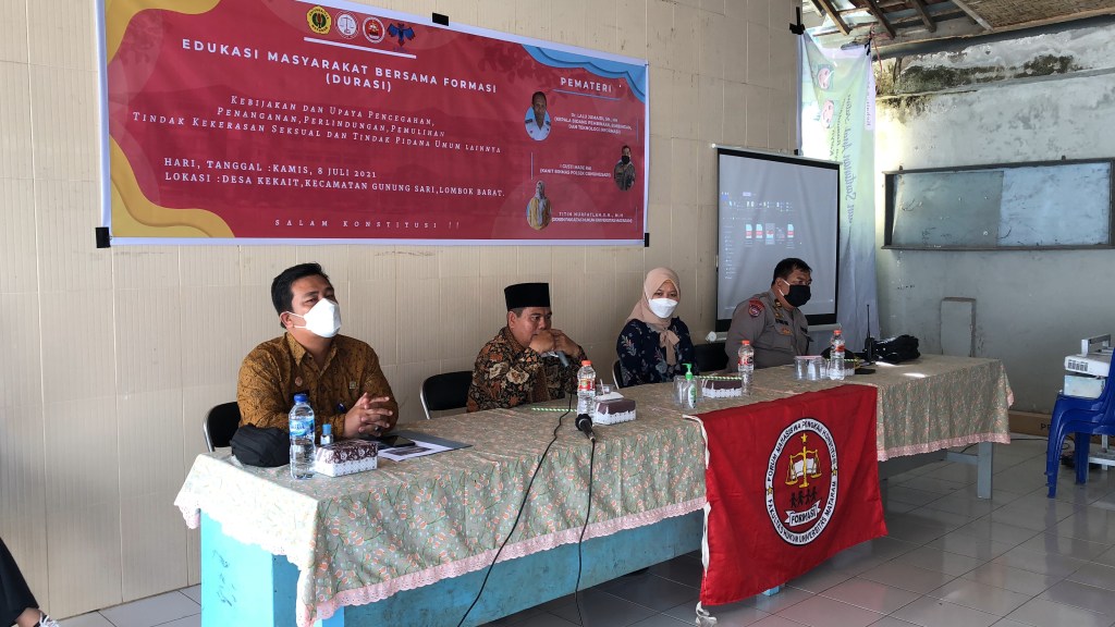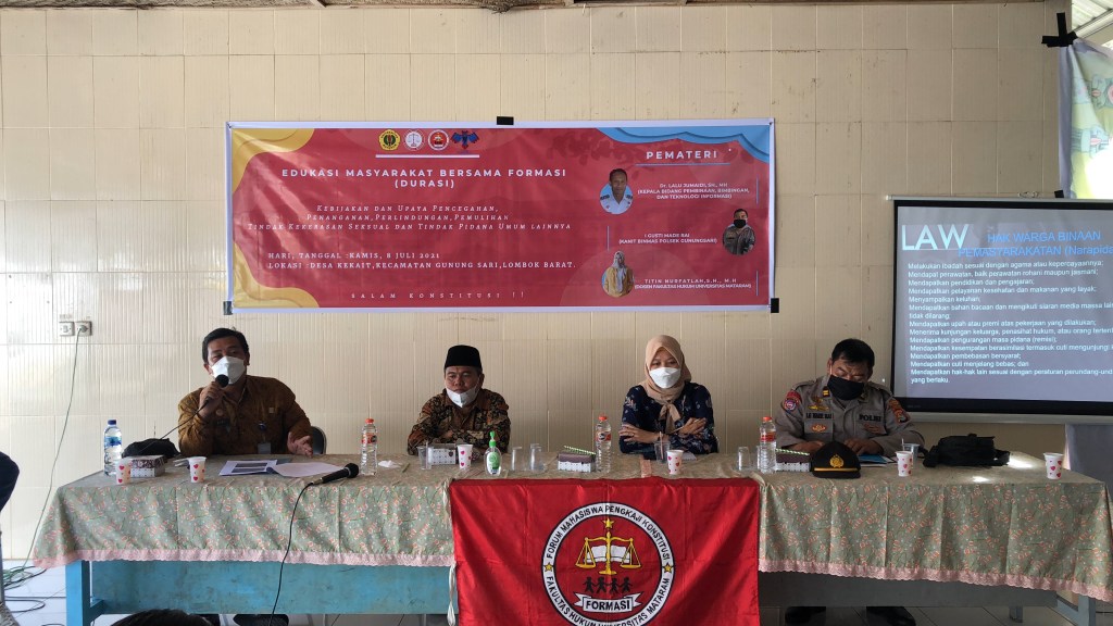 Kegiatan yang merupakan kerjasama antara Divisi Pemasyarakatan NTB Bersama Formasi (Forum Mahasiswa Pengkaji Konstitusi) Universitas Mataram ini diselenggarakan dalam rangka memberikan edukasi kepada masyarakat terhadap implementasi system penanganan perkara dalam implementasinya.