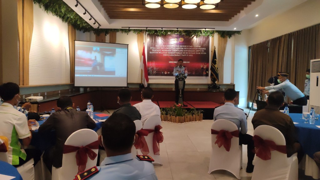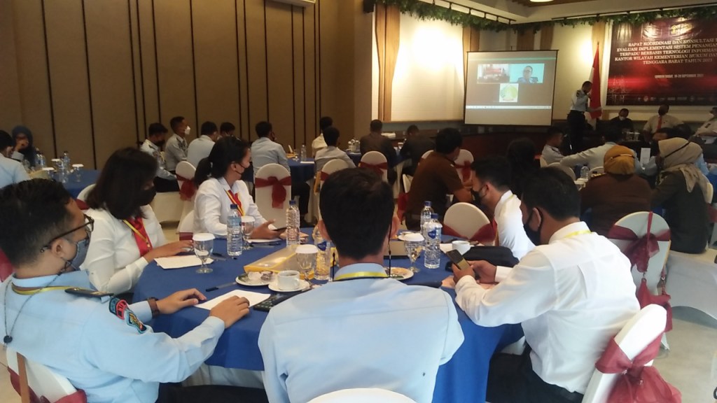 Mataram – Bertempat di Hotel Montana Premier Sengigi, Kepala Kantor Wilayah Kementerian Hukum dan HAM NTB, Haris Sukamto, berkesempatan membuka Rapat Koordinasi Sistem Peradilan Pidana Terpadu Berbasis Teknologi Informasi (SPPT-TI) pada Senin, 20/09/2021. Sejumlah 43 orang peserta yang berasal dari Kementerian Hukum dan HAM NTB serta beberapa APH luar seperti Pengadilan, Kejaksaan, dan Kepolisian hadir mengikuti jalannya acara dengan baik.