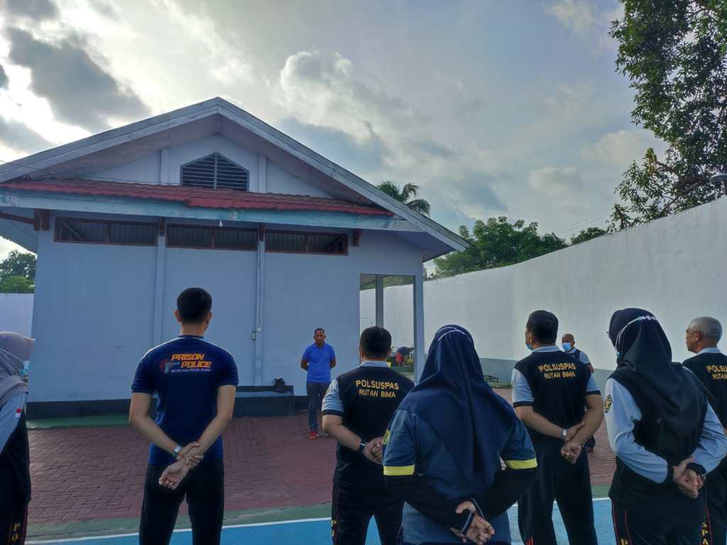 10 menit ajak petugas Rutan Bima berolahraga dan berjemur, Maliki sampaikan poin-poin penting yang menjadi higlight selama melaksanakan monitoring dan evaluasi.