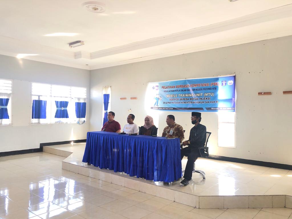 Mataram – Tutup Kegiatan Pelatihan MTU Service Motor Injeksi, Kepala Bidang Pembinaan, Lalu Jumaidi, didampingi Kepala Bapas Mataram hadir langsung pada Jumat, 15/07. Kegiatan dilaksanakan di Aula Bapas Mataram dan dihadiri pula oleh Kepala BLK Provinsi NTB, Ketua Baznas Kota Mataram, serta Kepala Dinas Sosial Kota Mataram.