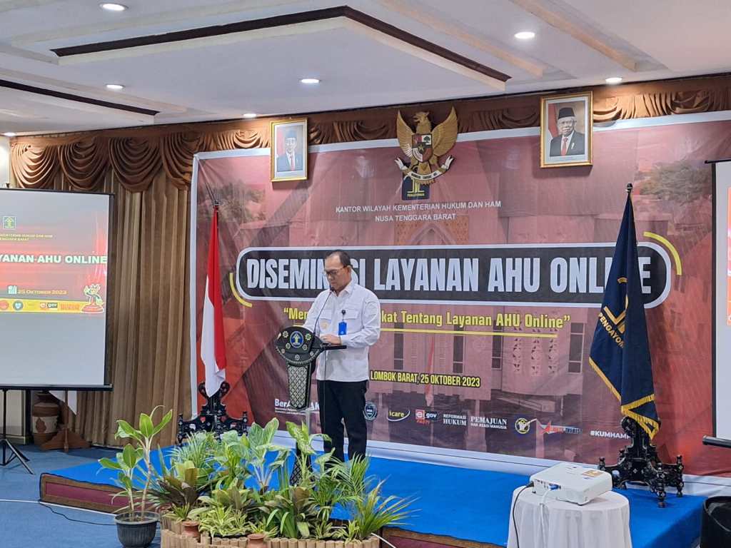 ntb.kemenkumham.go.id – Dalam rangka menyebarluaskan informasi dan pemahaman terkait Layanan Administrasi Hukum Umum (AHU), Kantor Wilayah Kementerian Hukum dan HAM Nusa Tenggara Barat melaksanakan kegiatan Diseminasi Layanan AHU Online, (25/10).