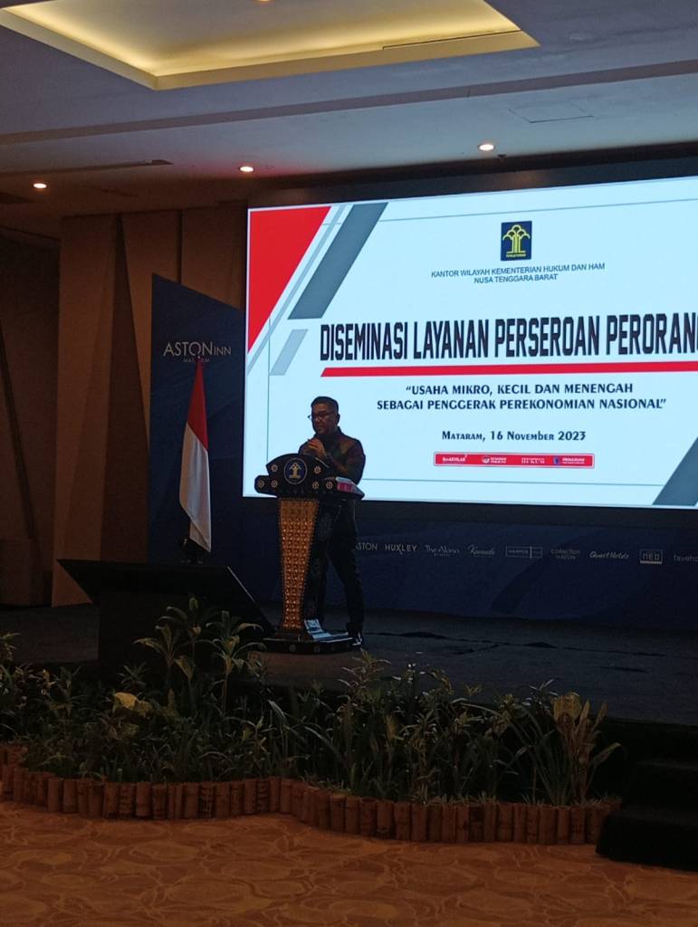 ntb.kemenkumham.go.id – Mataram, 16 November 2023 -. Kantor Wilayah Kementerian Hukum dan HAM Nusa Tenggara Barat melalui Sub Bidang Administrasi Hukum Umum menyelenggarakan Diseminasi Layanan Perseroan Perorangan dengan tema “Usaha Mikro, Kecil dan Menengah Sebagai Penggerak Perekonomian Nasional” di Hotel Aston Inn.