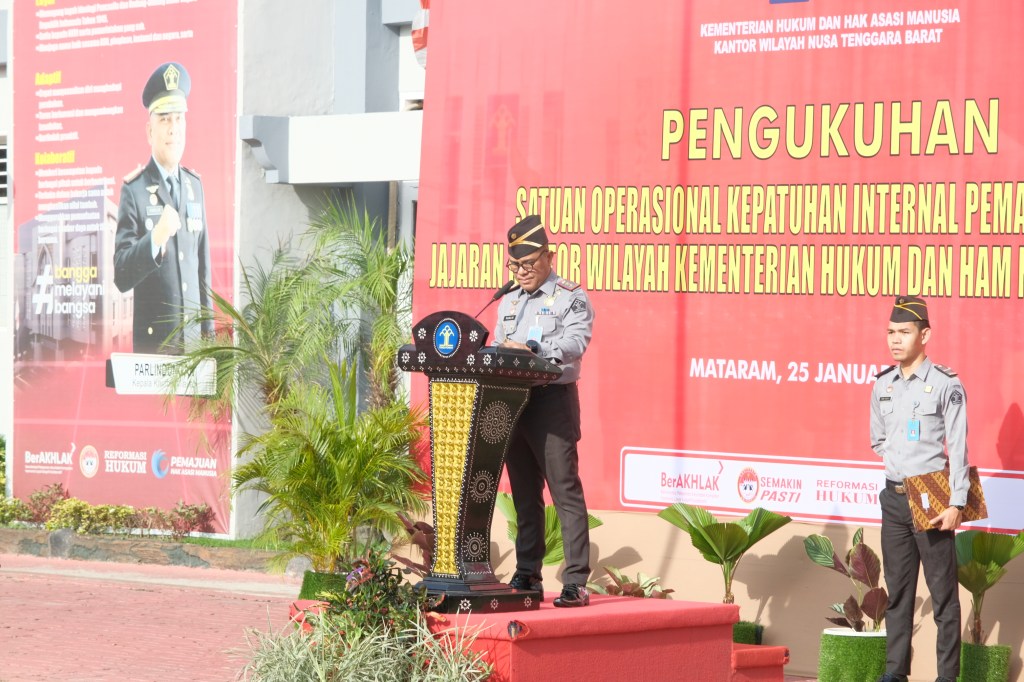 25 Januari 2024 – Kepala Kantor Wilayah Kementerian Hukum dan HAM Nusa Tenggara Barat, Parlindungan, telah resmi mengukuhkan Tim Satuan Operasional Kepatuhan Internal Pemasyarakatan pada Lapas/Rutan/LPKA di Lingkungan Kementerian Hukum dan HAM NTB.