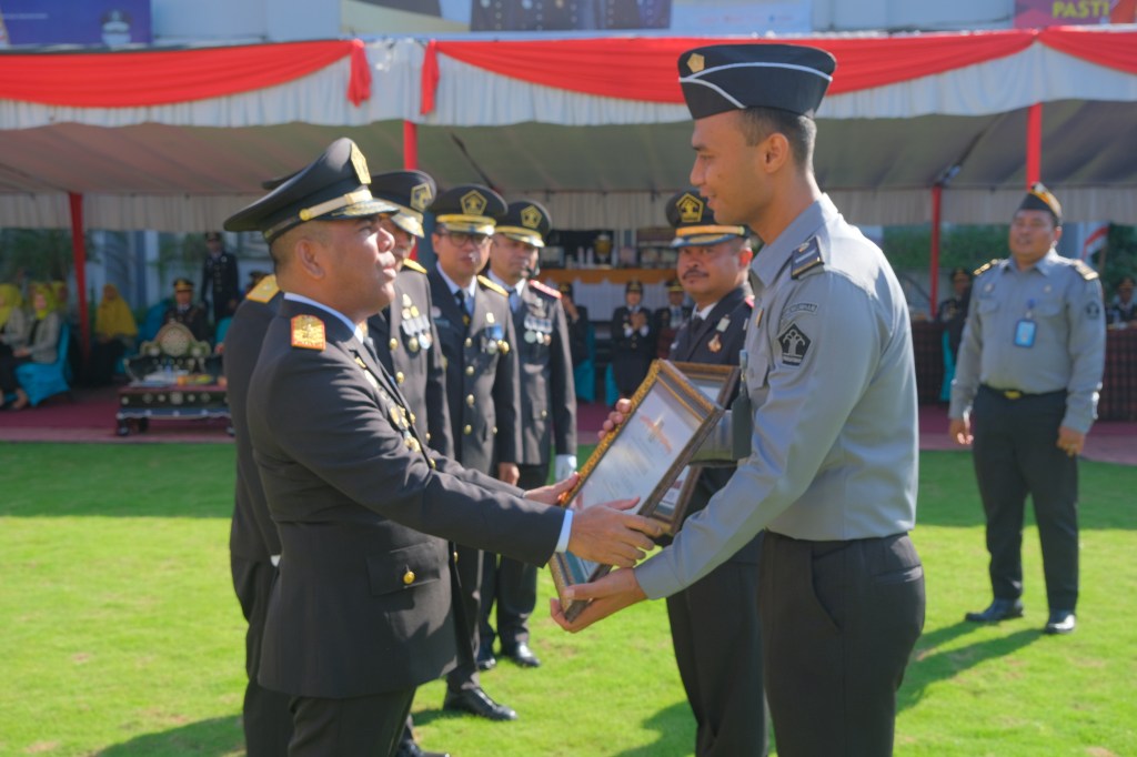 Dalam Upacara dilangsungkan penyerahan penghargaan yang diterima oleh Satuan Kerja Pemasyarakatan Kanwil Kemenkumham NTB .